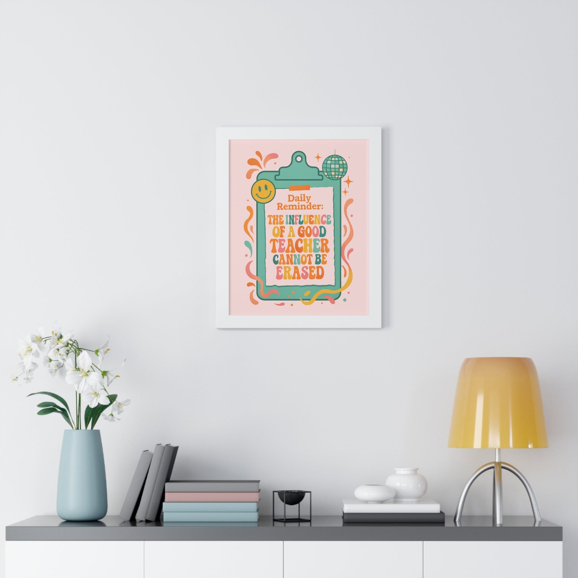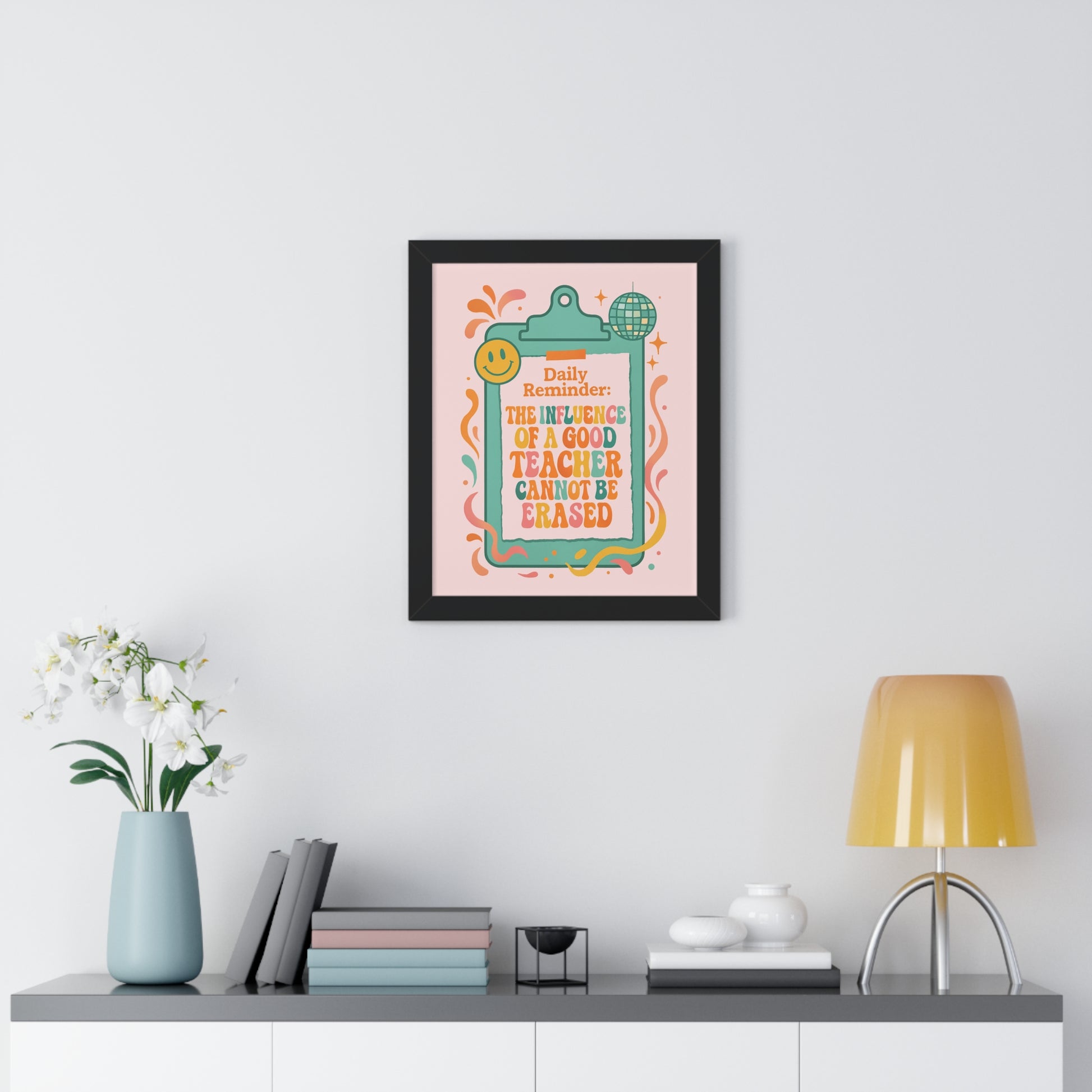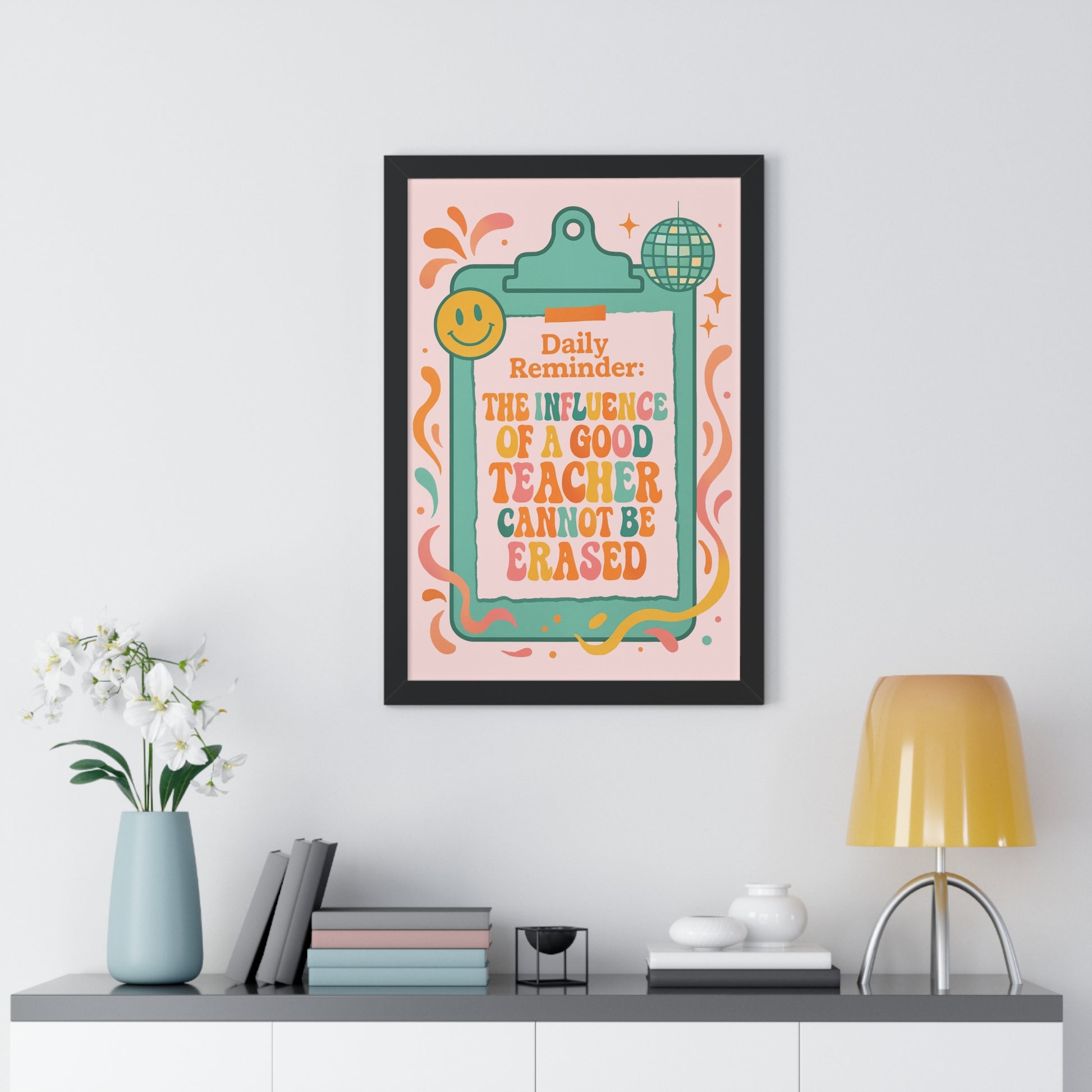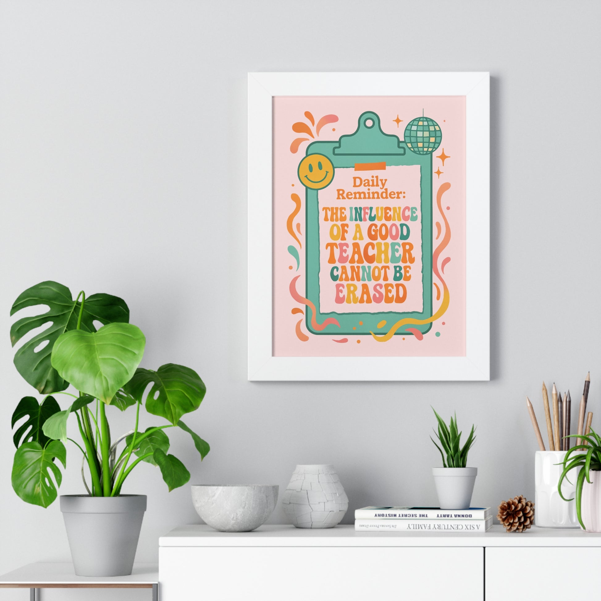 Elevate your space with this vibrant framed vertical poster, perfect for inspiring educators or adorning a classroom. The cheerful design exudes positivity, making it an ideal addition to any learning environment. This eye-catching piece serves as a constant reminder of the joy and dedication that comes with teaching, fostering an uplifting atmosphere wherever it’s displayed. Ideal for teachers, students, or anyone who appreciates the art of education, this poster is a fitting gift for Teacher Appreciation Week, back-to-school celebrations, or end-of-year acknowledgments. With its bright colors and charming message, it also makes a delightful decoration for birthdays and educational milestones.