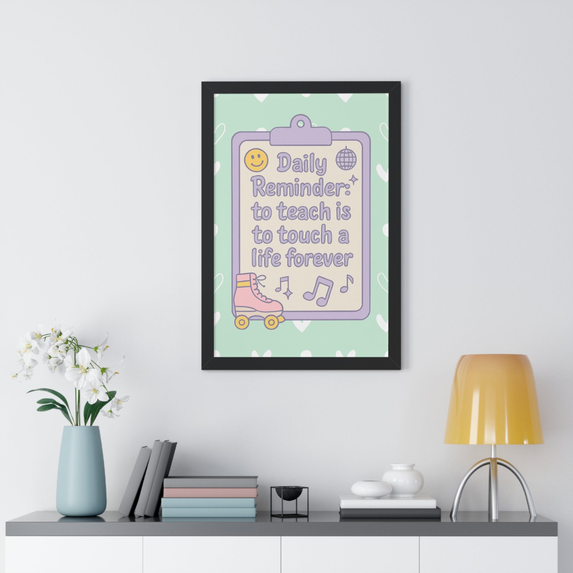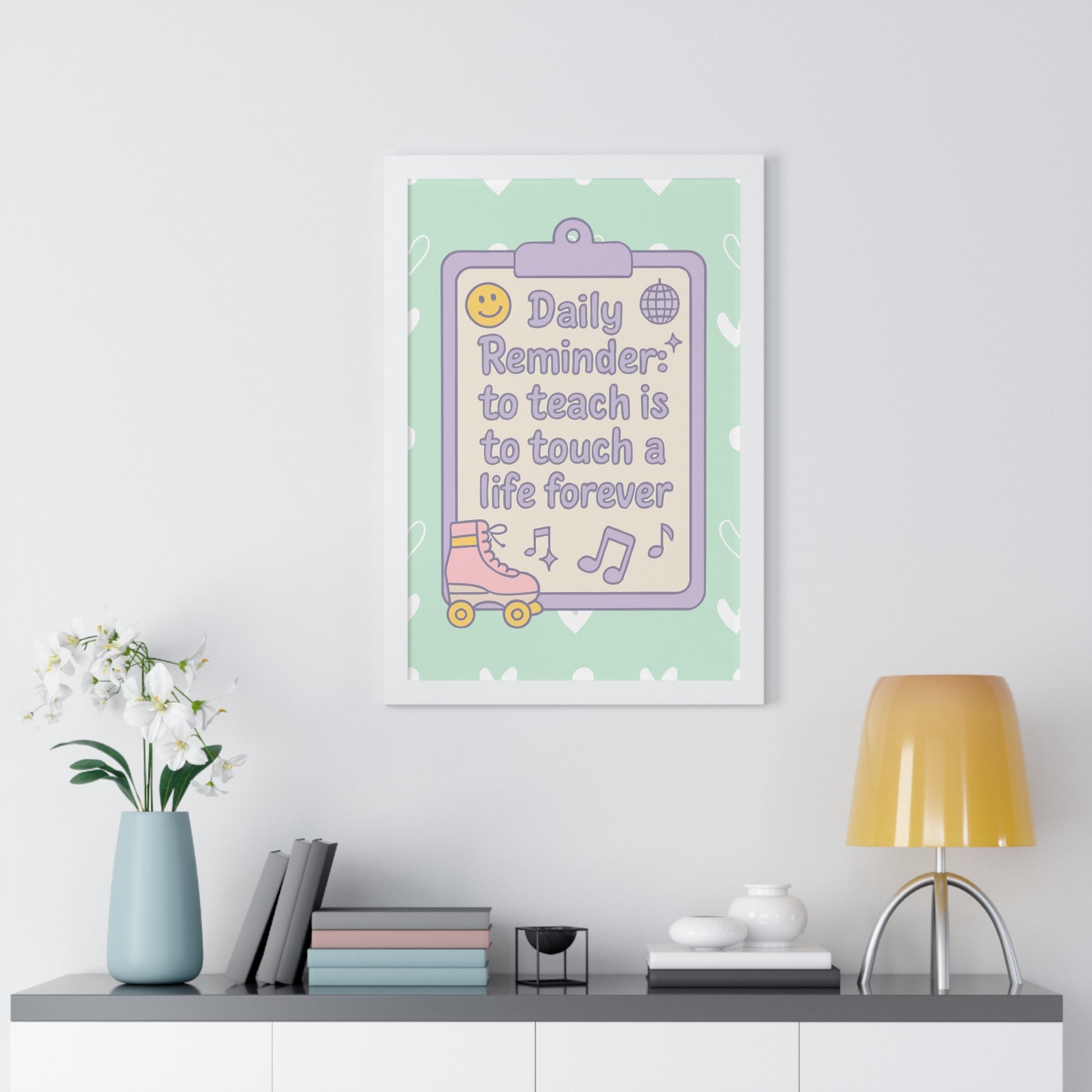 Elevate your space with this vibrant framed vertical poster, perfect for inspiring educators or adorning a classroom. The cheerful design exudes positivity, making it an ideal addition to any learning environment. This eye-catching piece serves as a constant reminder of the joy and dedication that comes with teaching, fostering an uplifting atmosphere wherever it’s displayed. Ideal for teachers, students, or anyone who appreciates the art of education, this poster is a fitting gift for Teacher Appreciation Week, back-to-school celebrations, or end-of-year acknowledgments. With its bright colors and charming message, it also makes a delightful decoration for birthdays and educational milestones.