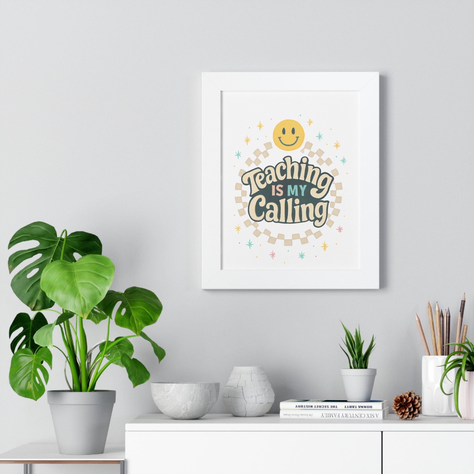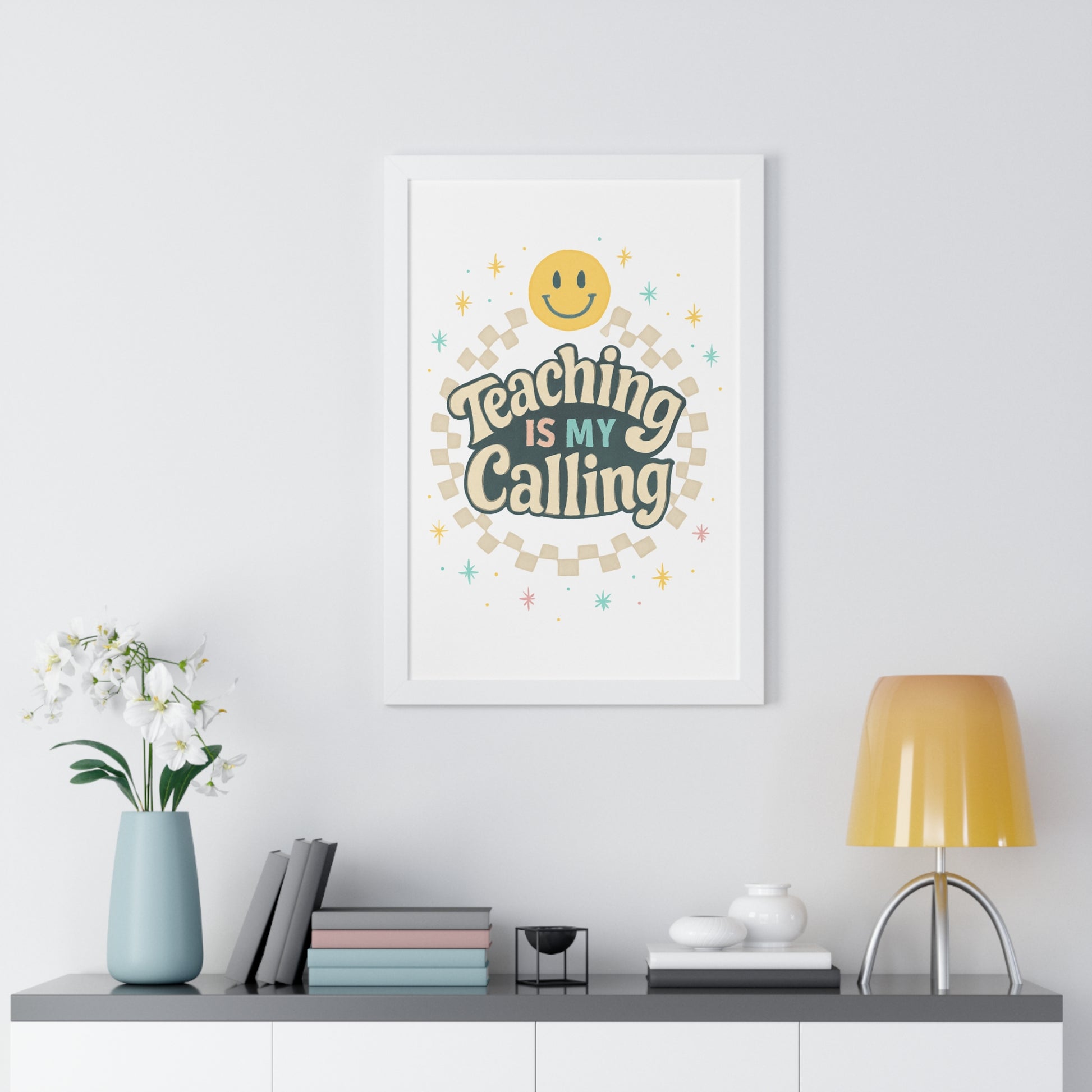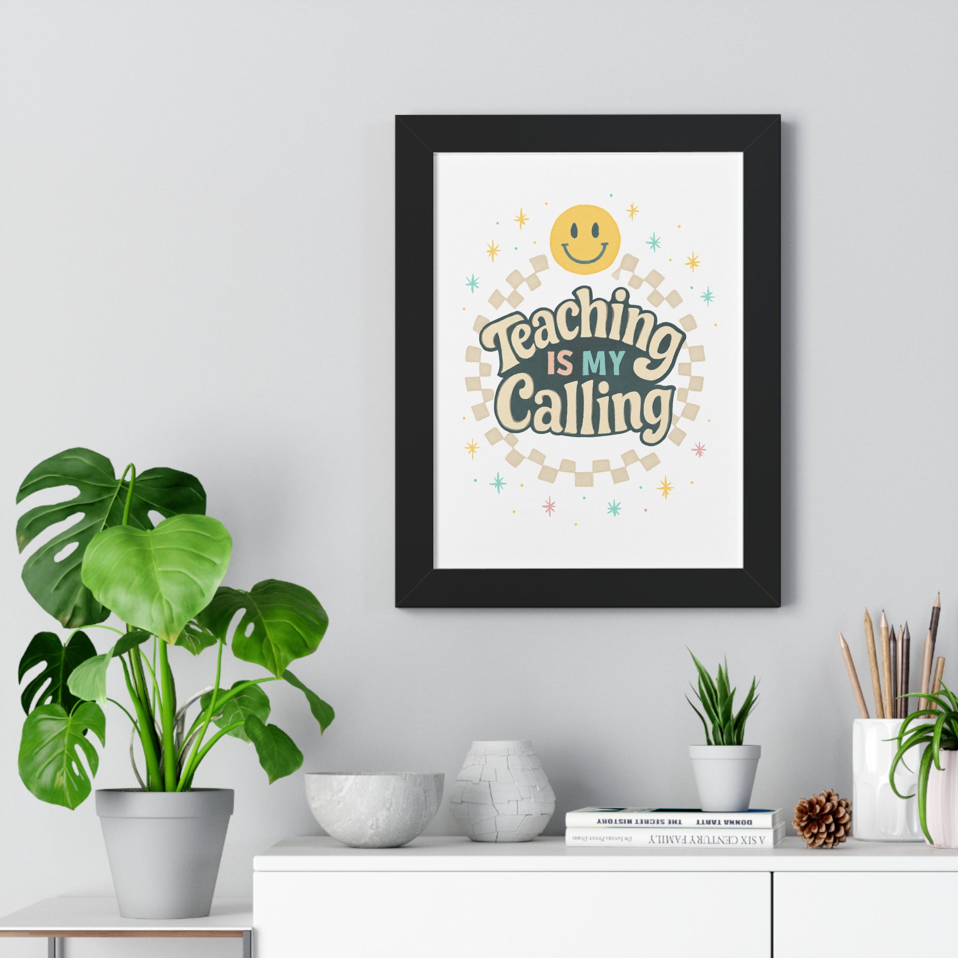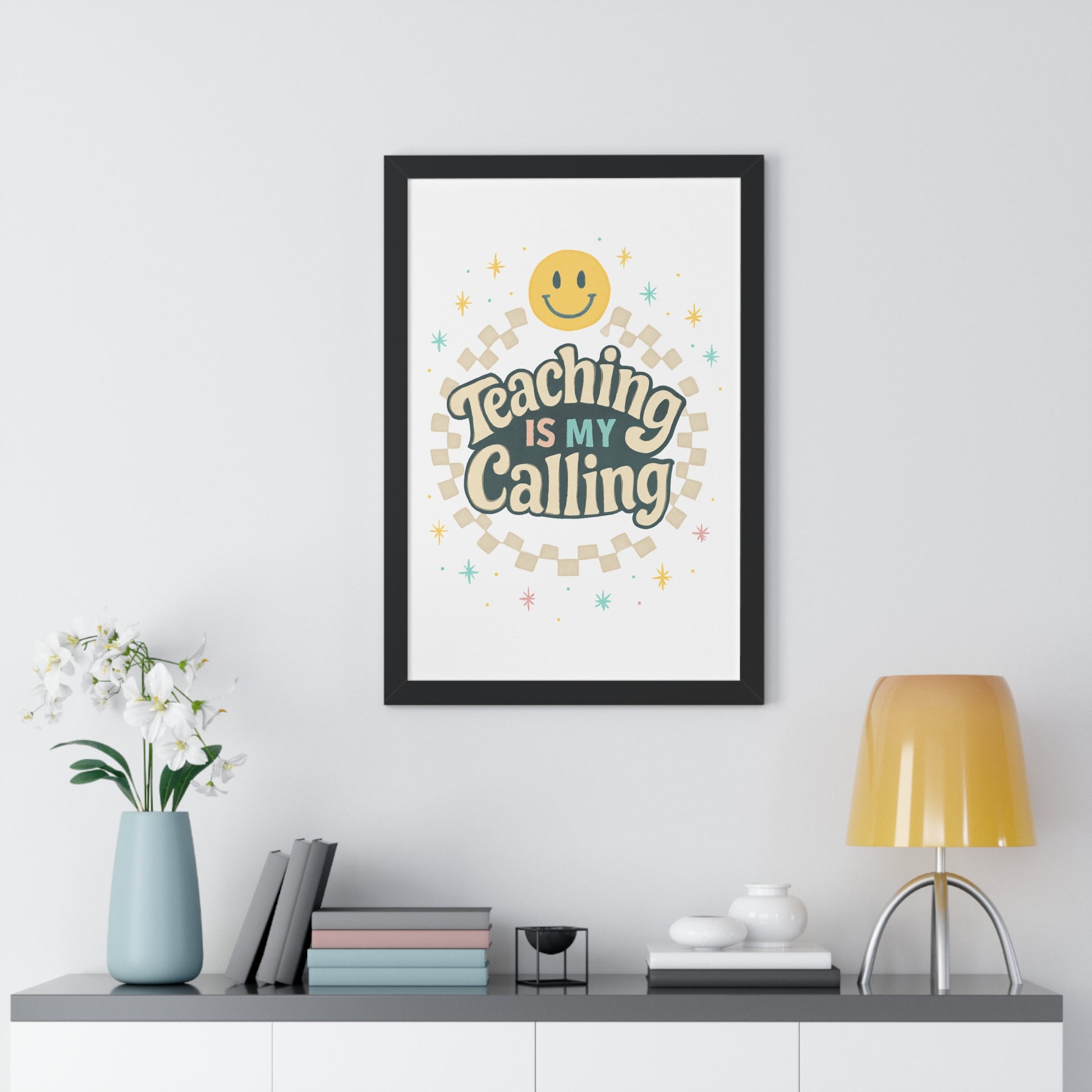 Elevate your space with this vibrant framed vertical poster, perfect for inspiring educators or adorning a classroom. The cheerful design exudes positivity, making it an ideal addition to any learning environment. This eye-catching piece serves as a constant reminder of the joy and dedication that comes with teaching, fostering an uplifting atmosphere wherever it’s displayed. Ideal for teachers, students, or anyone who appreciates the art of education, this poster is a fitting gift for Teacher Appreciation Week, back-to-school celebrations, or end-of-year acknowledgments. With its bright colors and charming message, it also makes a delightful decoration for birthdays and educational milestones.
